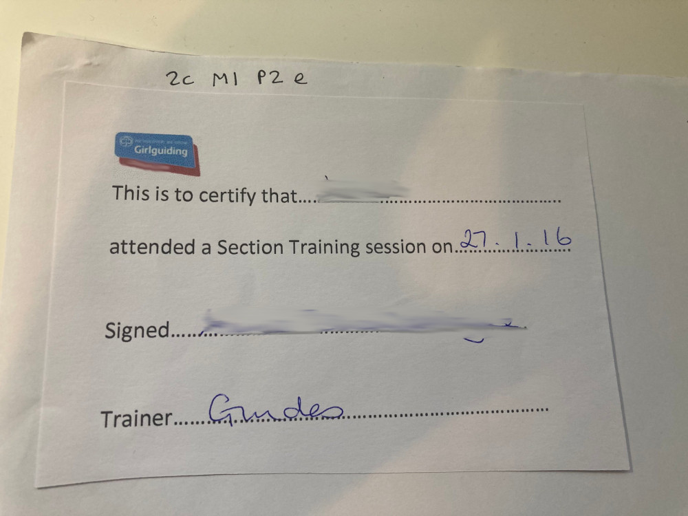 I don’t know if the elearnings produce them anymore but when I was doing my Guides qualification, it spat out a certificate for completing the “Being a Guide Leader” online learning module. If you’ve been to a face-to-face country/regional training session, they might have a certificate – my county presents you with a little A6 piece of paper, signed by the trainer, that certifies that you attended the session.